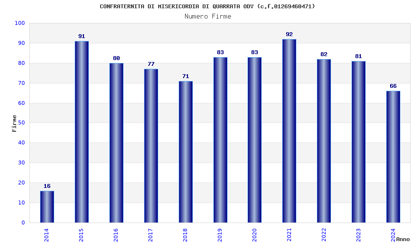 | Anno | Firme | Importi | Media | Naz. | Reg. | Prov. | Comu. |