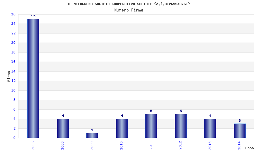 | Anno | Firme | Importi | Media | Naz. | Reg. | Prov. | Comu. |