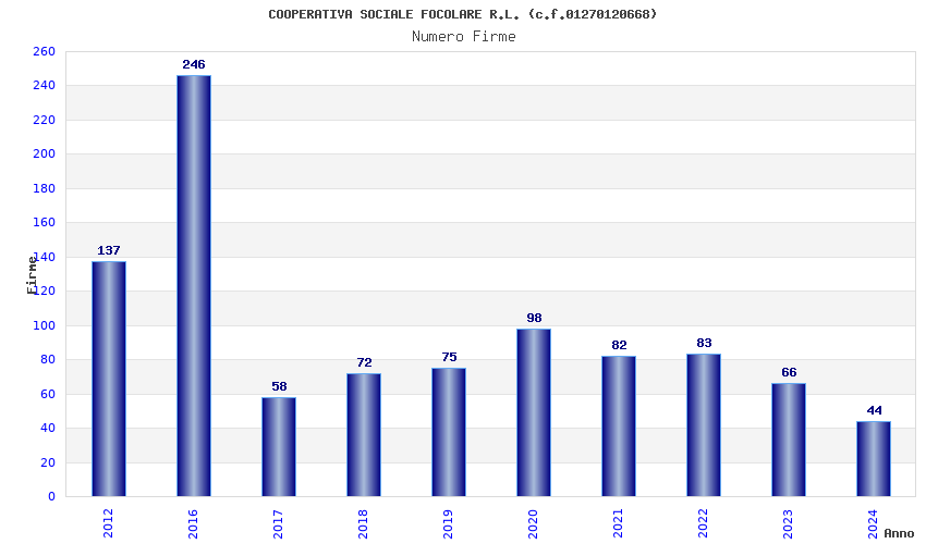 | Anno | Firme | Importi | Media | Naz. | Reg. | Prov. | Comu. |