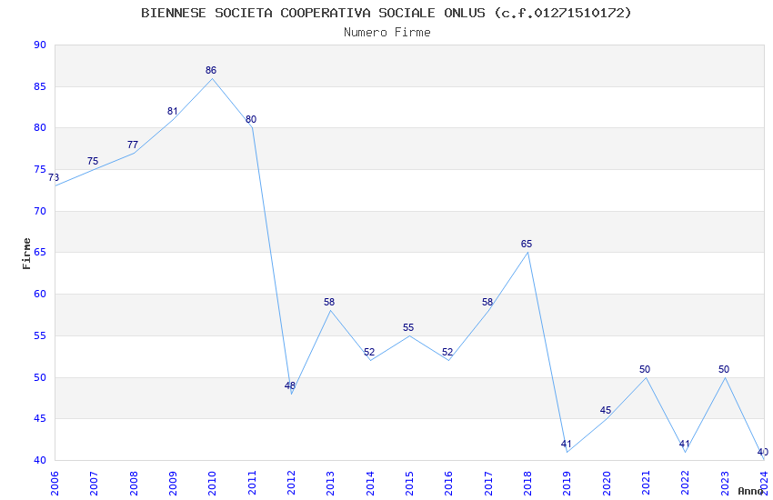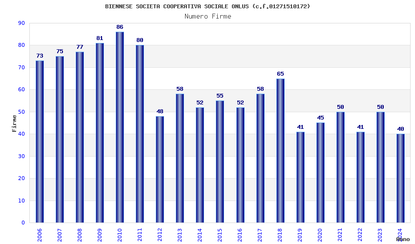 | Anno | Firme | Importi | Media | Naz. | Reg. | Prov. | Comu. |
