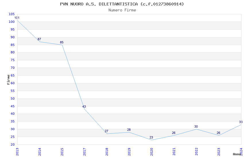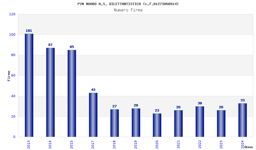 | 2013 | 101 | 3.703,28 | 36,67 | 11.505 | 192 | 22 | 5 |