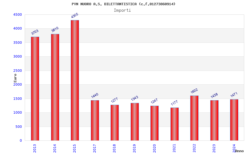 | Anno | Firme | Importi | Media | Naz. | Reg. | Prov. | Comu. |