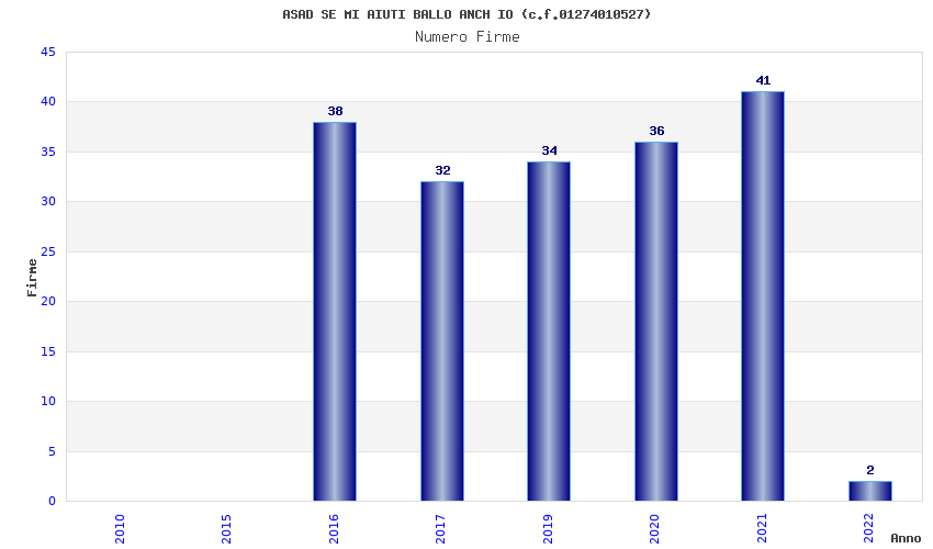 | Anno | Firme | Importi | Media | Naz. | Reg. | Prov. | Comu. |