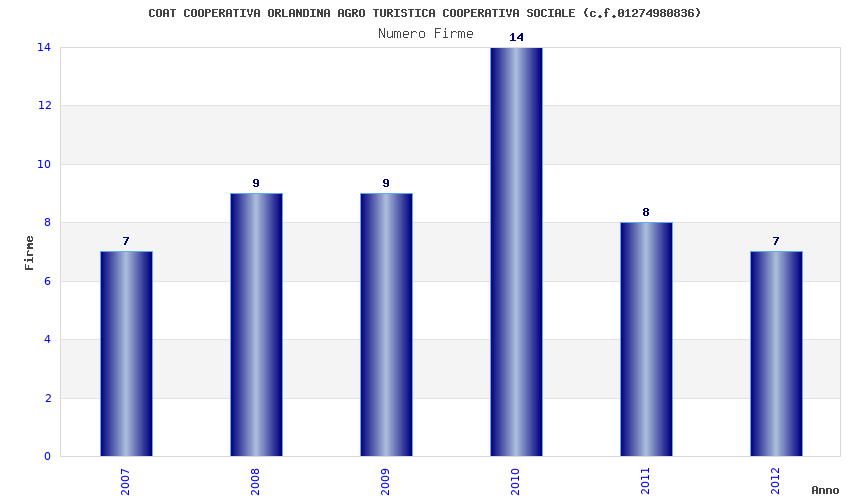 | Anno | Firme | Importi | Media | Naz. | Reg. | Prov. | Comu. |