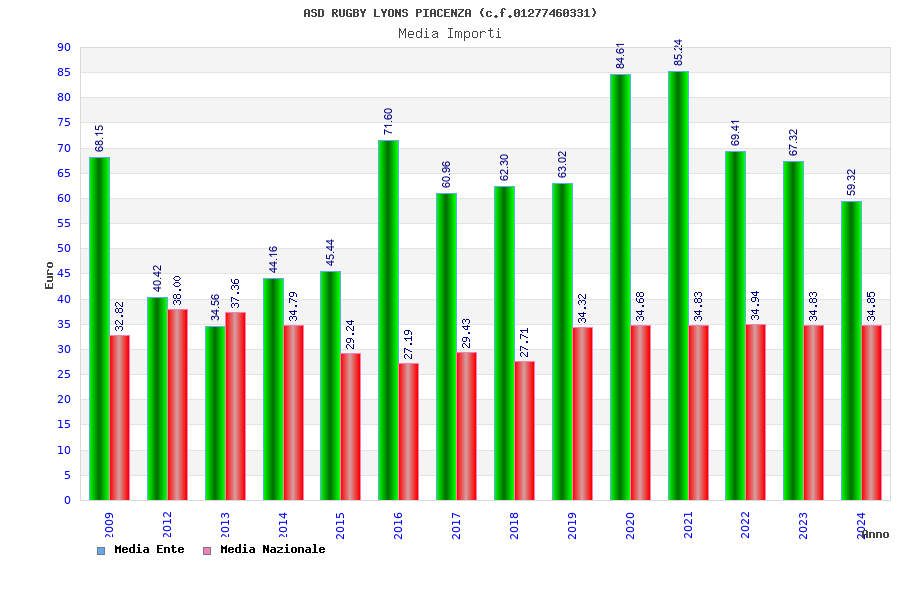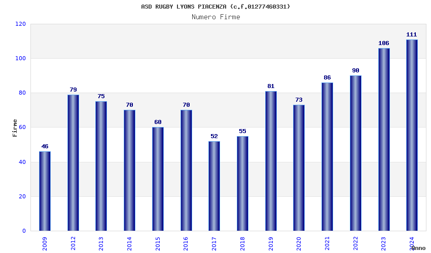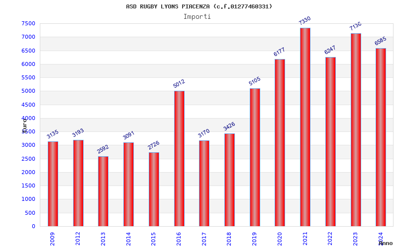 | Anno | Firme | Importi | Media | Naz. | Reg. | Prov. | Comu. |
