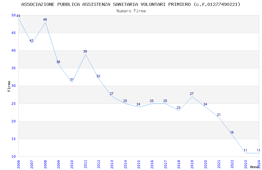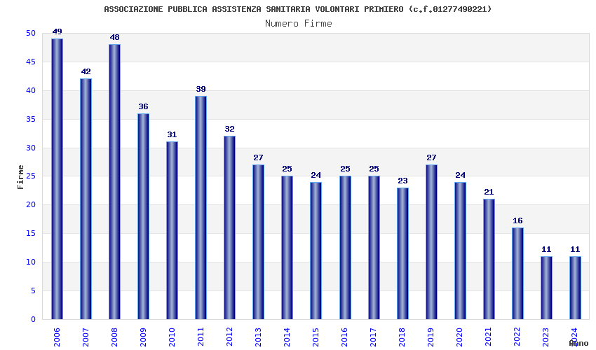 | Anno | Firme | Importi | Media | Naz. | Reg. | Prov. | Comu. |