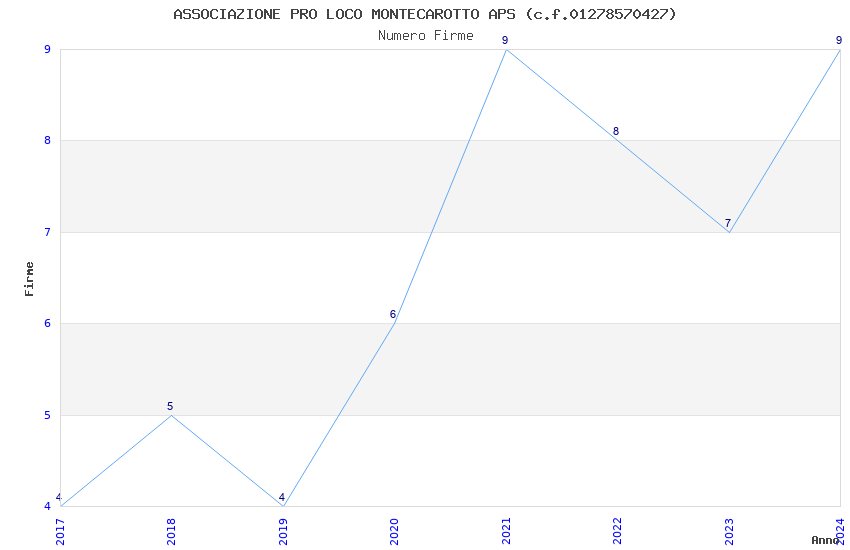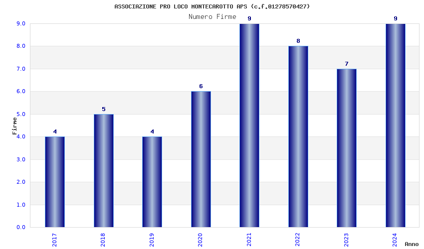| Anno | Firme | Importi | Media | Naz. | Reg. | Prov. | Comu. |