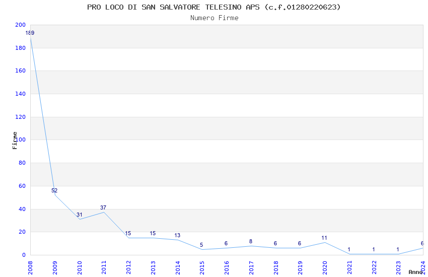 | Anno | Firme | Importi | Media | Naz. | Reg. | Prov. | Comu. |