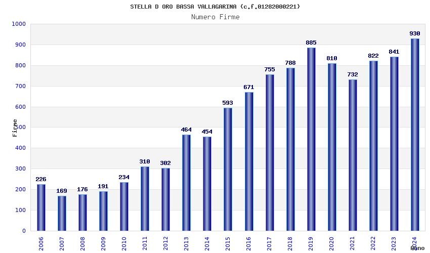 Anno Firme Importi Media Naz. Reg. Prov. Comu.