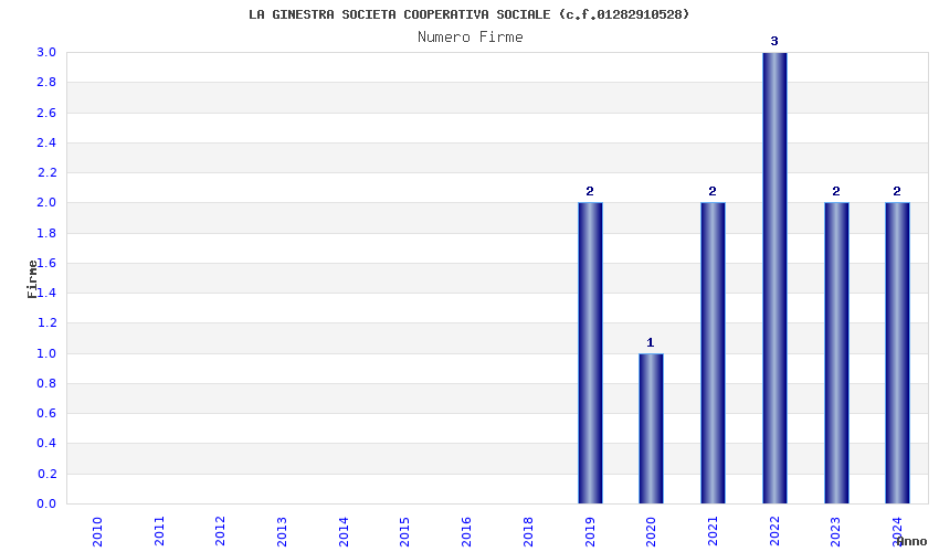 | Anno | Firme | Importi | Media | Naz. | Reg. | Prov. | Comu. |