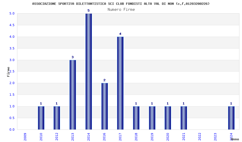 | Anno | Firme | Importi | Media | Naz. | Reg. | Prov. | Comu. |