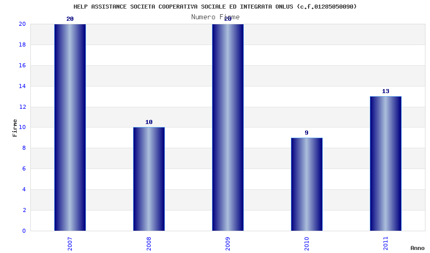 | Anno | Firme | Importi | Media | Naz. | Reg. | Prov. | Comu. |