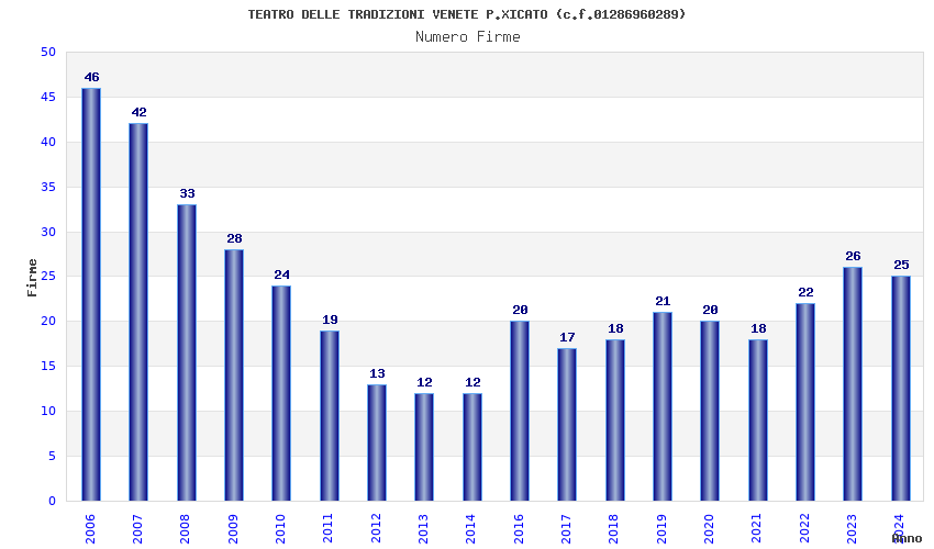 | Anno | Firme | Importi | Media | Naz. | Reg. | Prov. | Comu. |