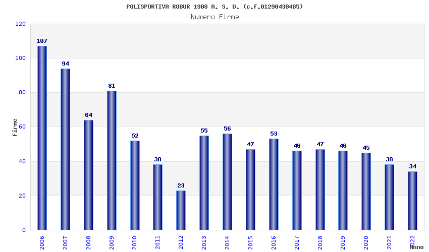 | Anno | Firme | Importi | Media | Naz. | Reg. | Prov. | Comu. |