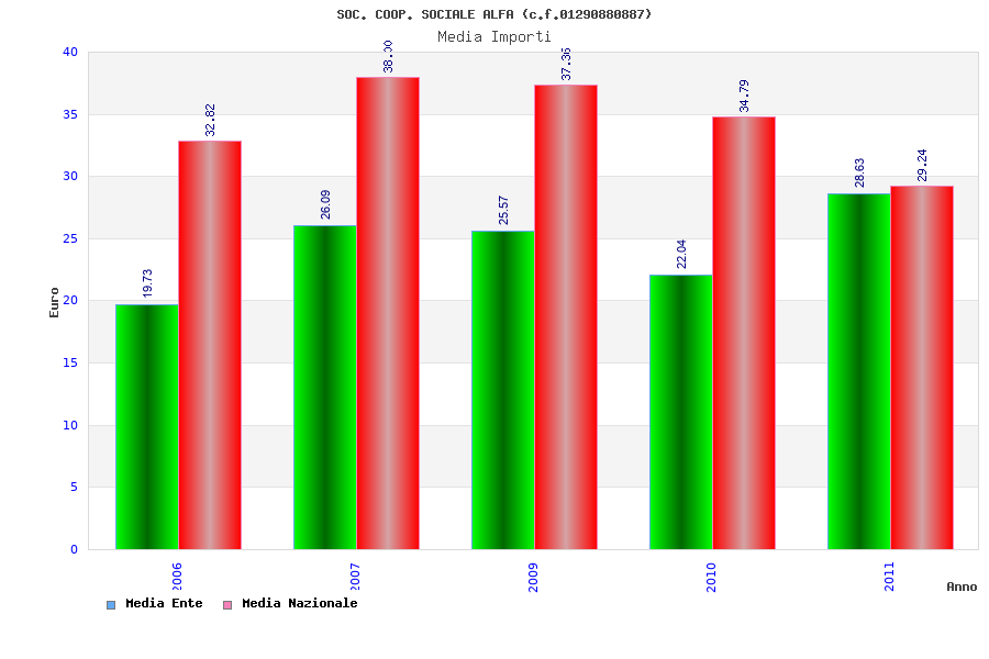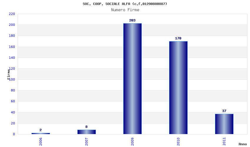 | Anno | Firme | Importi | Media | Naz. | Reg. | Prov. | Comu. |