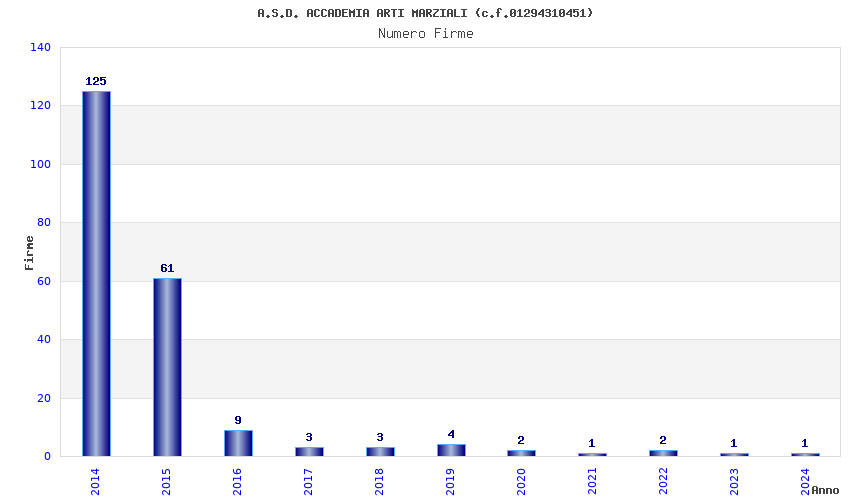 | Anno | Firme | Importi | Media | Naz. | Reg. | Prov. | Comu. |