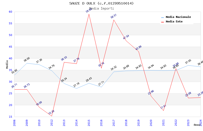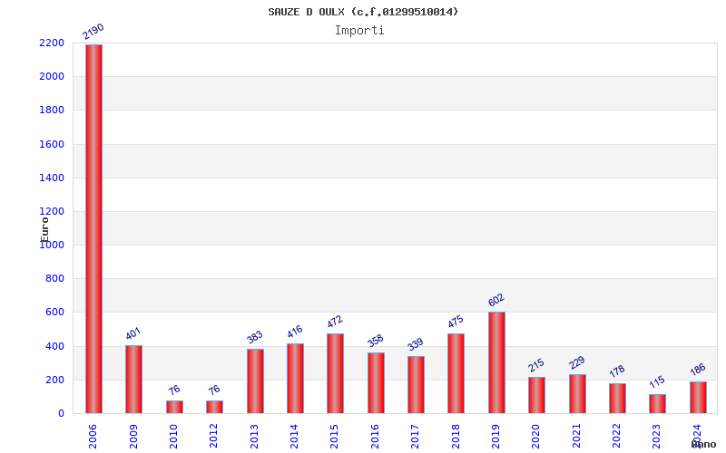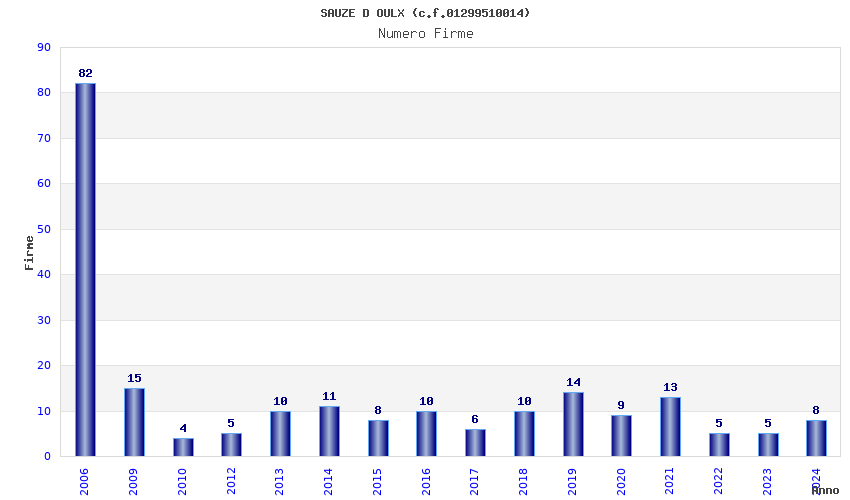 | Anno | Firme | Importi | Media | Naz. | Reg. | Prov. | Comu. |