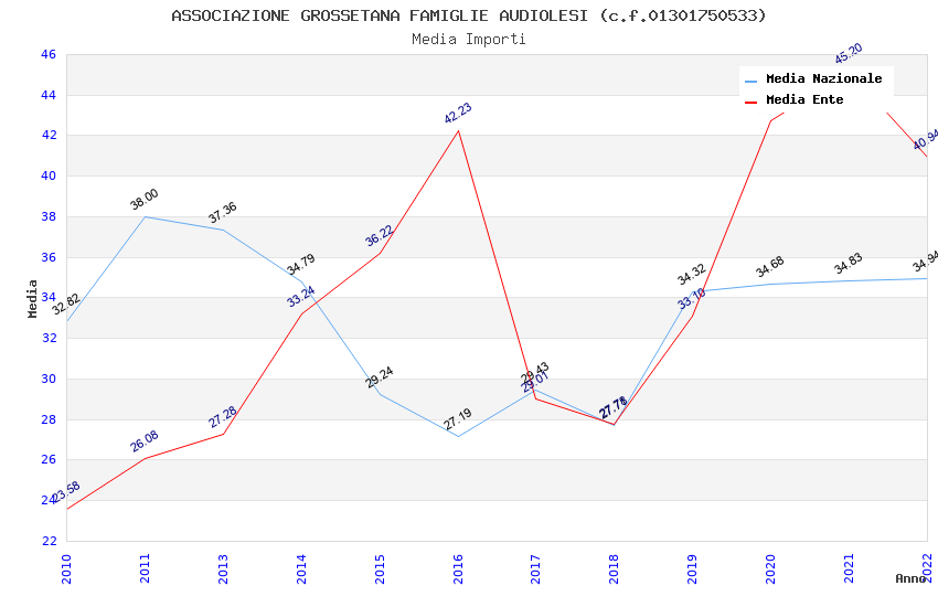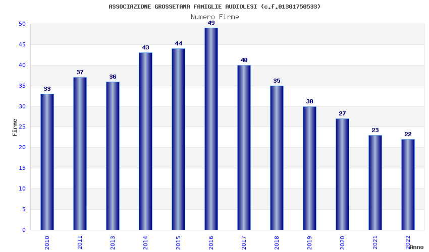 | Anno | Firme | Importi | Media | Naz. | Reg. | Prov. | Comu. |