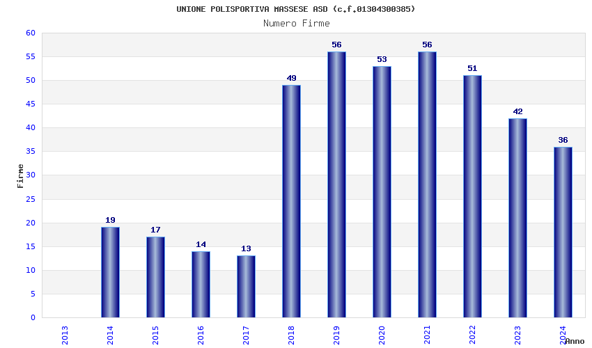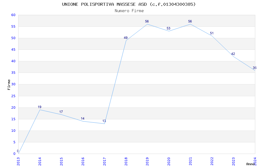 | 2019 | 56 | 1.183,51 | 21,13 | 32.719 | 2.909 | 182 | 4 |