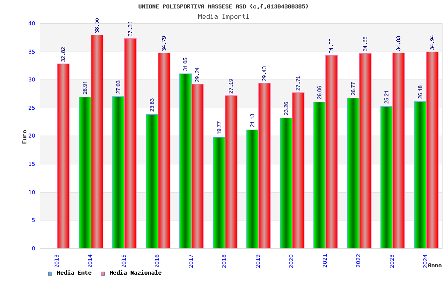 | Anno | Firme | Importi | Media | Naz. | Reg. | Prov. | Comu. |