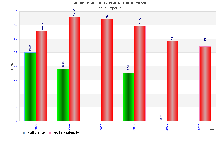 | Anno | Firme | Importi | Media | Naz. | Reg. | Prov. | Comu. |
