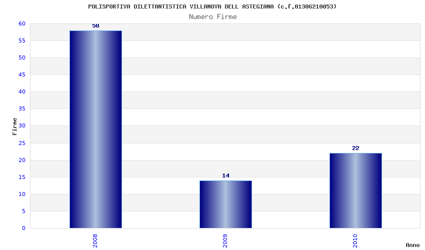 | Anno | Firme | Importi | Media | Naz. | Reg. | Prov. | Comu. |