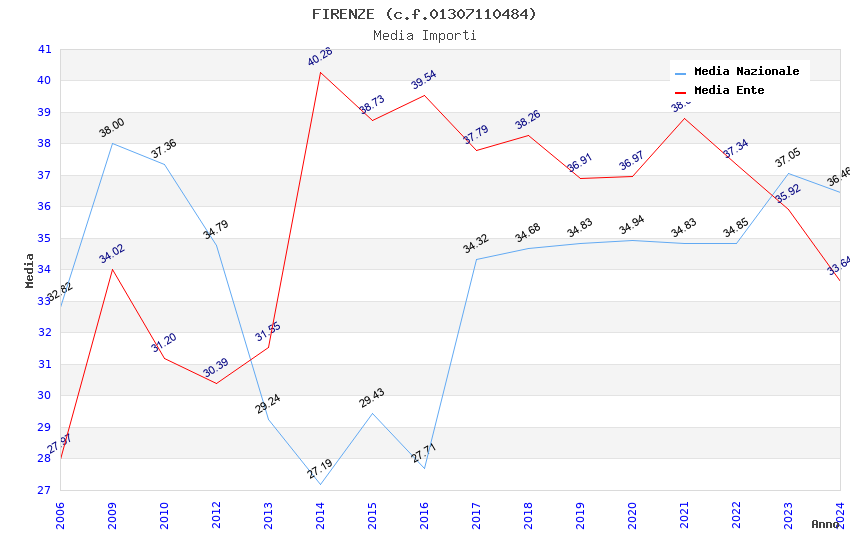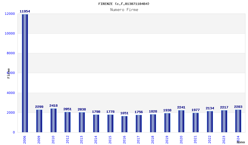 | Anno | Firme | Importi | Media | Naz. | Reg. | Prov. | Comu. |