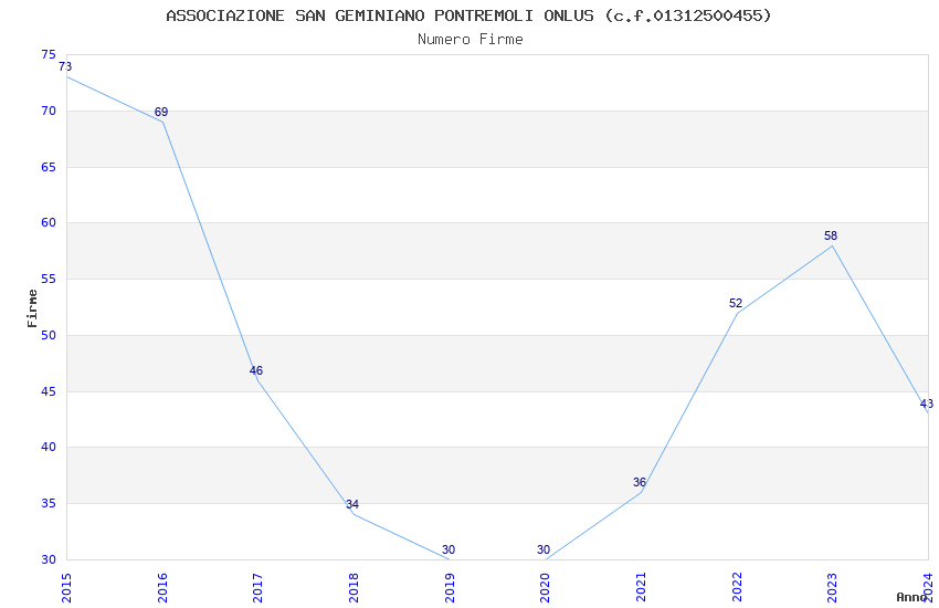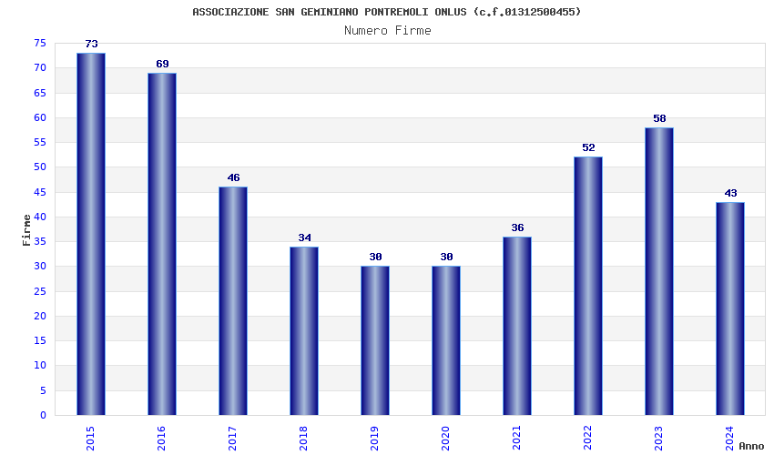 | Anno | Firme | Importi | Media | Naz. | Reg. | Prov. | Comu. |