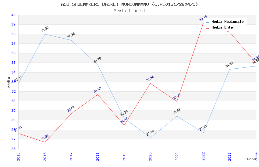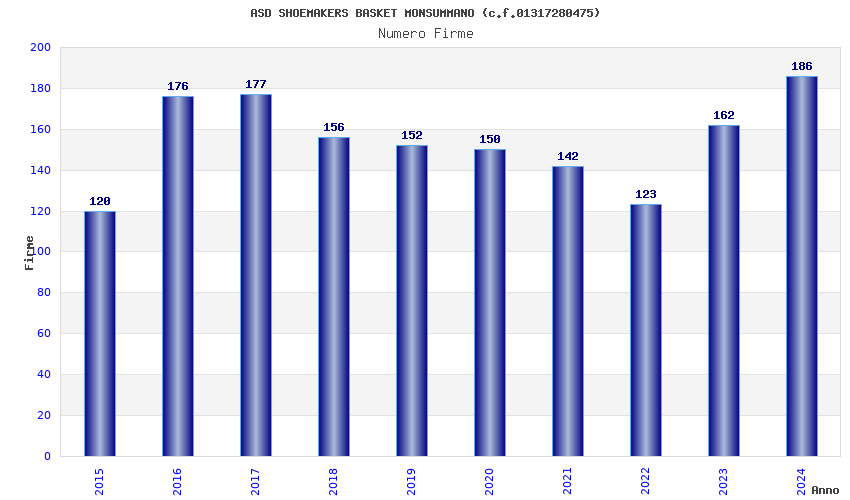 | Anno | Firme | Importi | Media | Naz. | Reg. | Prov. | Comu. |