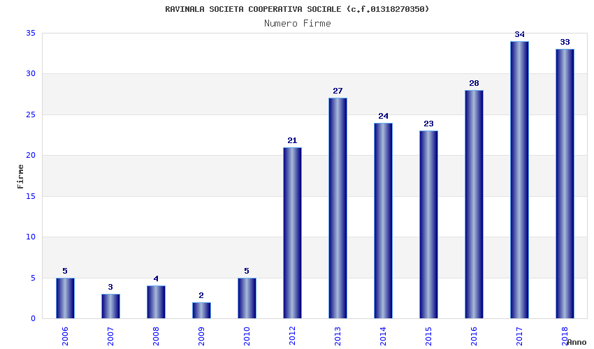| Anno | Firme | Importi | Media | Naz. | Reg. | Prov. | Comu. |