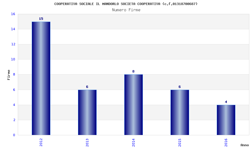 | Anno | Firme | Importi | Media | Naz. | Reg. | Prov. | Comu. |