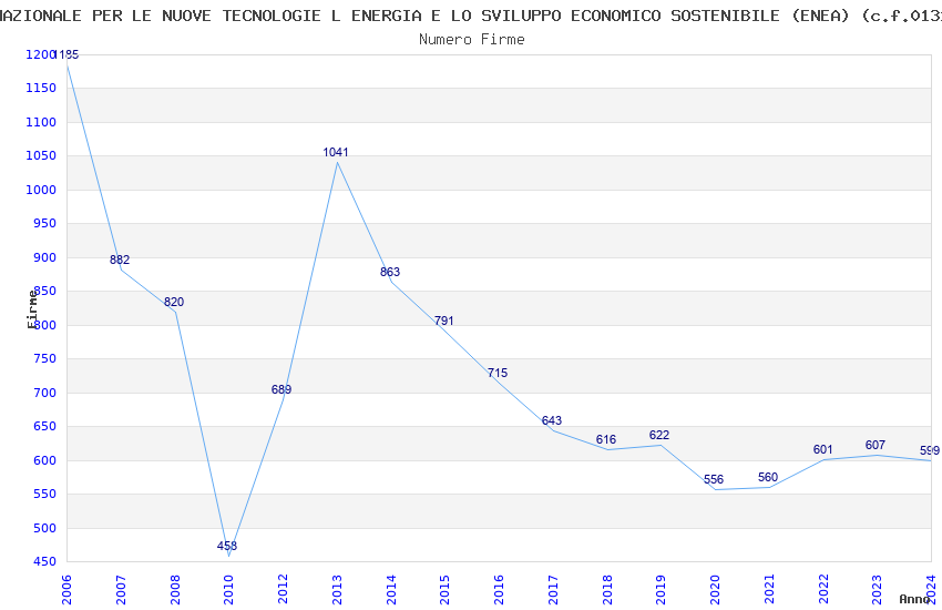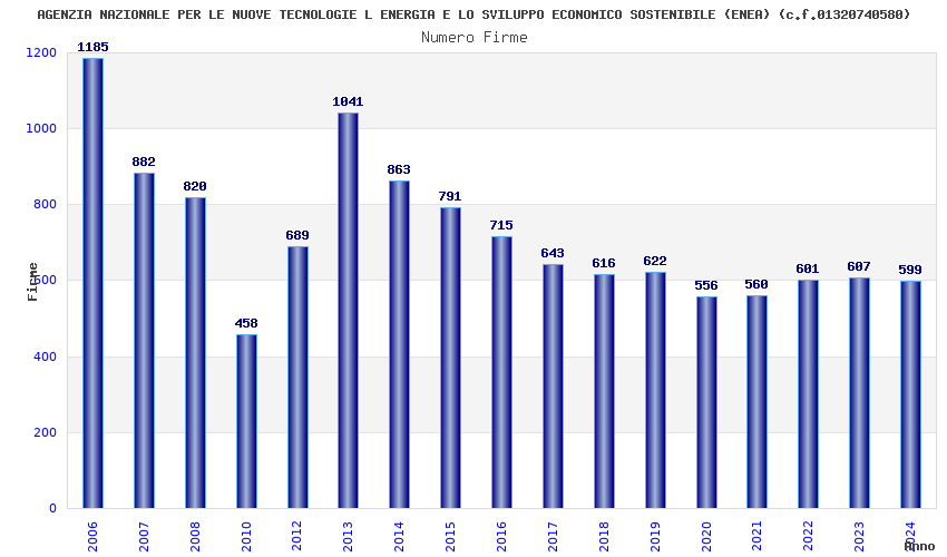 | Anno | Firme | Importi | Media | Naz. | Reg. | Prov. | Comu. |