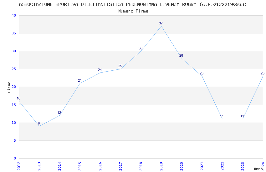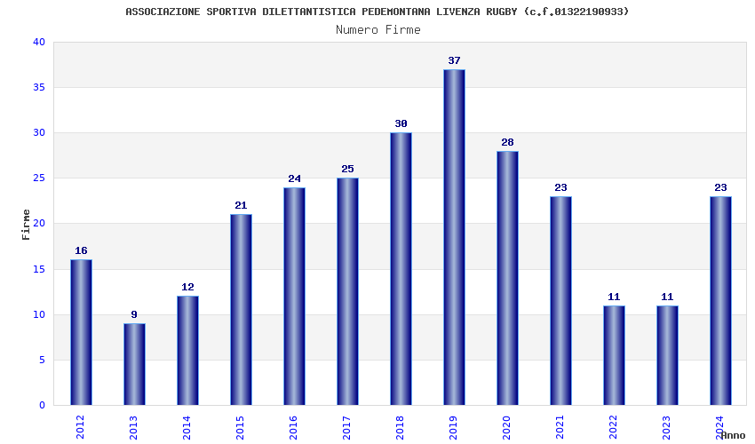 | 2019 | 37 | 910,37 | 24,60 | 37.017 | 1.050 | 232 | 2 |