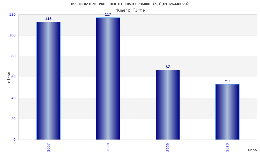 | Anno | Firme | Importi | Media | Naz. | Reg. | Prov. | Comu. |