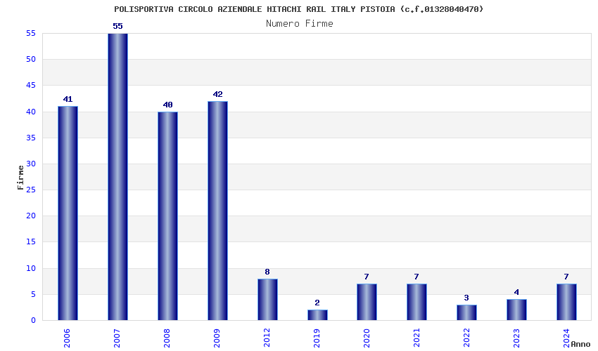 | Anno | Firme | Importi | Media | Naz. | Reg. | Prov. | Comu. |