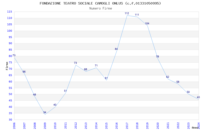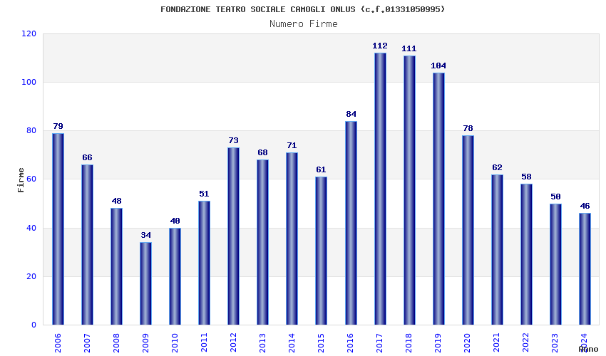 | Anno | Firme | Importi | Media | Naz. | Reg. | Prov. | Comu. |