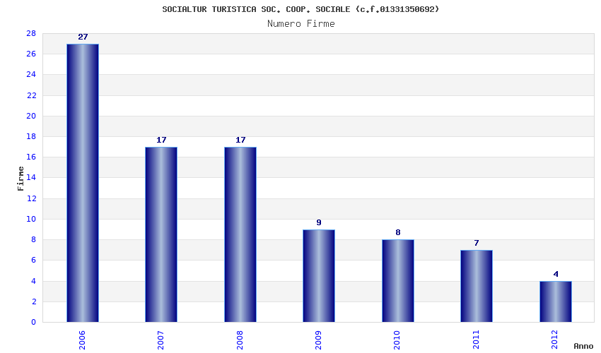 | Anno | Firme | Importi | Media | Naz. | Reg. | Prov. | Comu. |