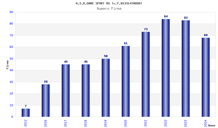 | 2022 | 84 | 3.374,15 | 40,17 | 15.325 | 925 | 46 | 26 |