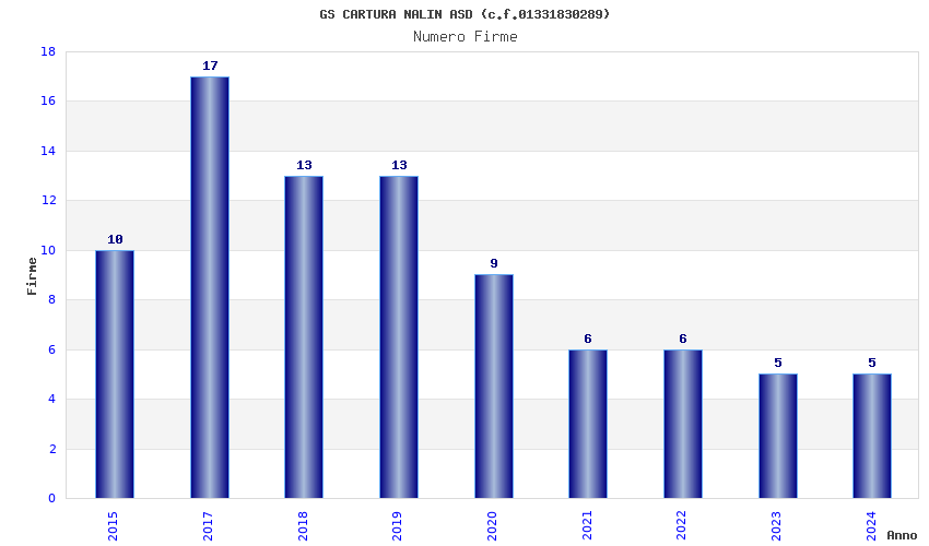 | Anno | Firme | Importi | Media | Naz. | Reg. | Prov. | Comu. |