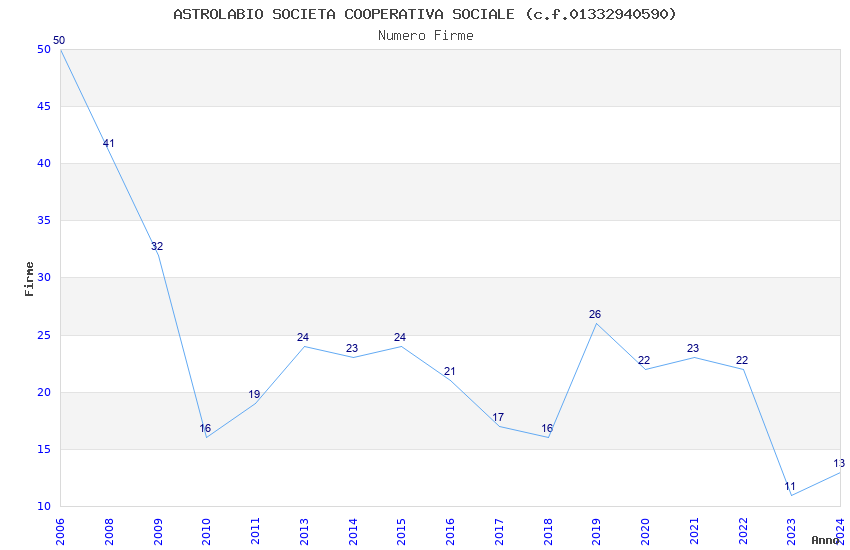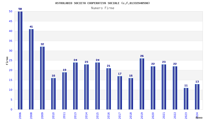 | Anno | Firme | Importi | Media | Naz. | Reg. | Prov. | Comu. |