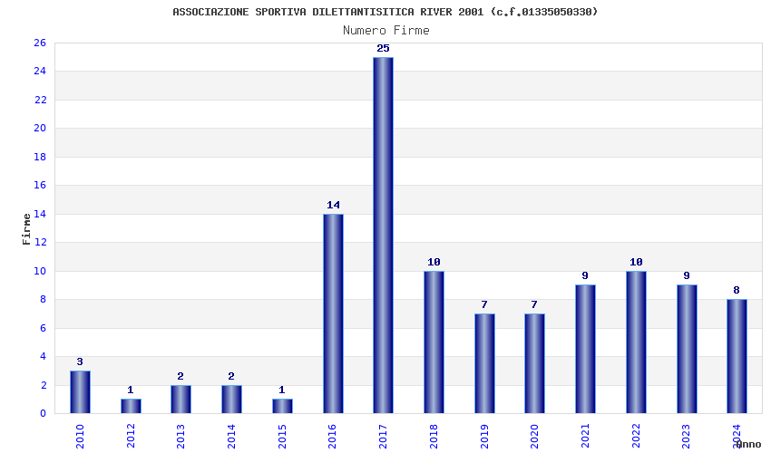 | Anno | Firme | Importi | Media | Naz. | Reg. | Prov. | Comu. |