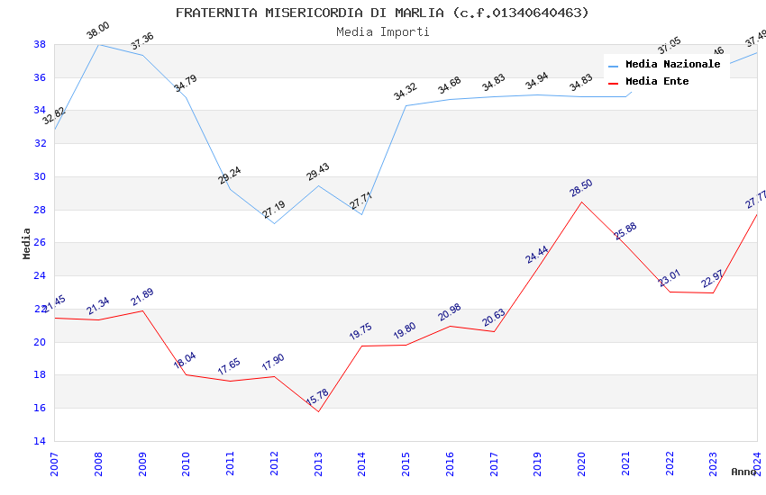 | Anno | Firme | Importi | Media | Naz. | Reg. | Prov. | Comu. |