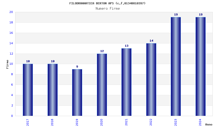 | Anno | Firme | Importi | Media | Naz. | Reg. | Prov. | Comu. |