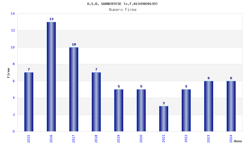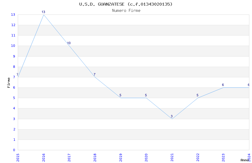 | 2016 | 13 | 538,68 | 41,44 | 40.622 | 8.625 | 523 | 6 |