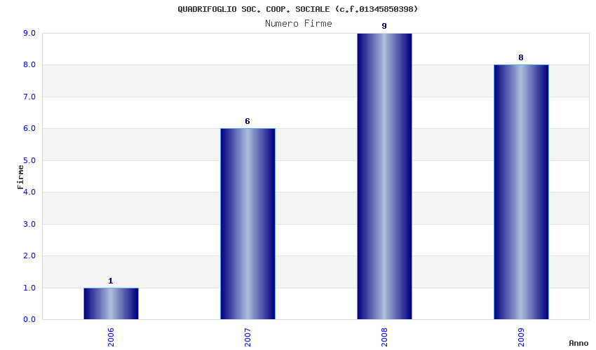 | Anno | Firme | Importi | Media | Naz. | Reg. | Prov. | Comu. |