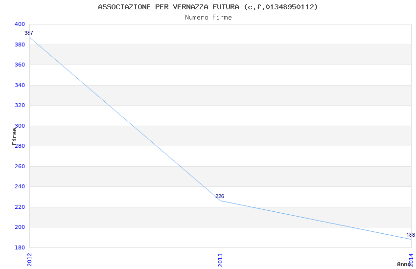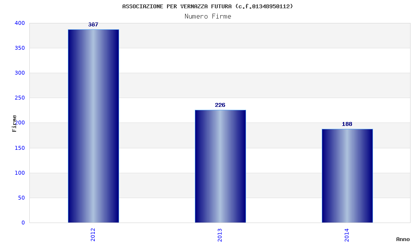 | Anno | Firme | Importi | Media | Naz. | Reg. | Prov. | Comu. |