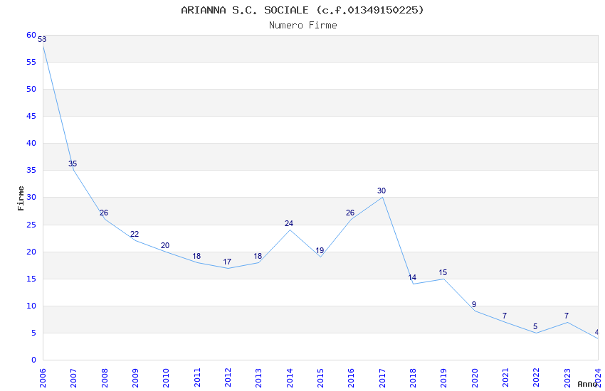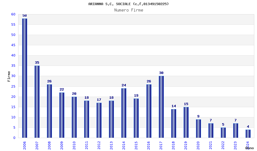 | Anno | Firme | Importi | Media | Naz. | Reg. | Prov. | Comu. |