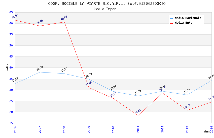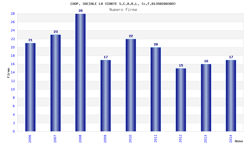 | Anno | Firme | Importi | Media | Naz. | Reg. | Prov. | Comu. |