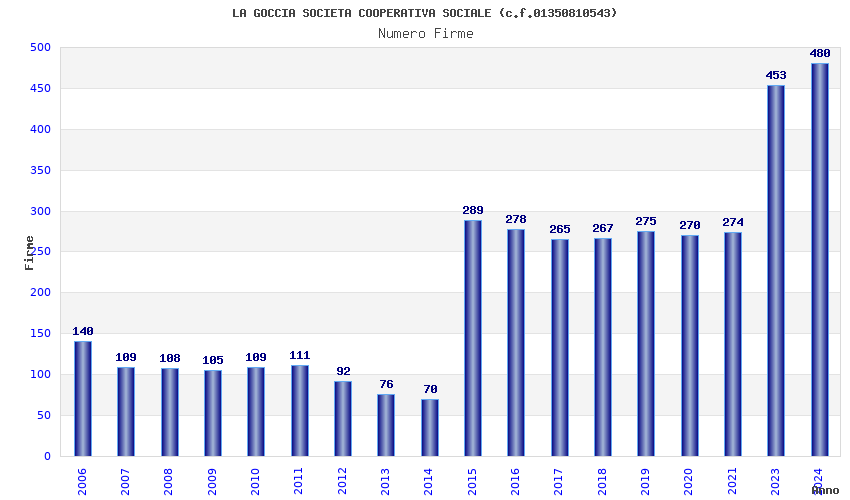 | Anno | Firme | Importi | Media | Naz. | Reg. | Prov. | Comu. |