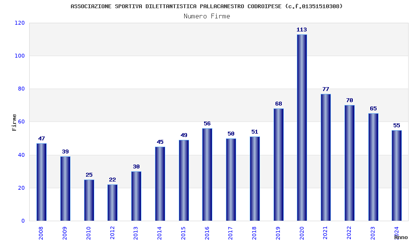 | 2024 | 55 | 2.303,82 | 41,89 | 21.580 | 469 | 224 | 8 |